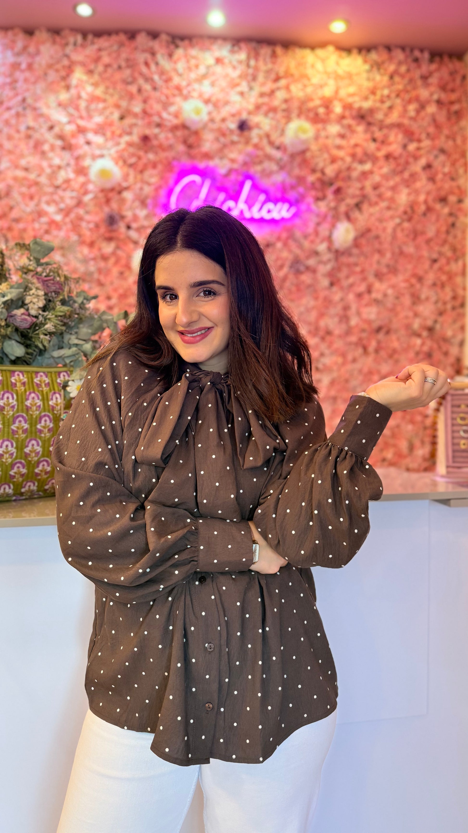 La Blusa Dots combina el encanto clásico de los lunares con un toque sofisticado gracias a su lazo en el cuello. Sus mangas abullonadas y su caída fluida la convierten en una prenda versátil, perfecta tanto para un look de oficina como para un conjunto más especial de noche.