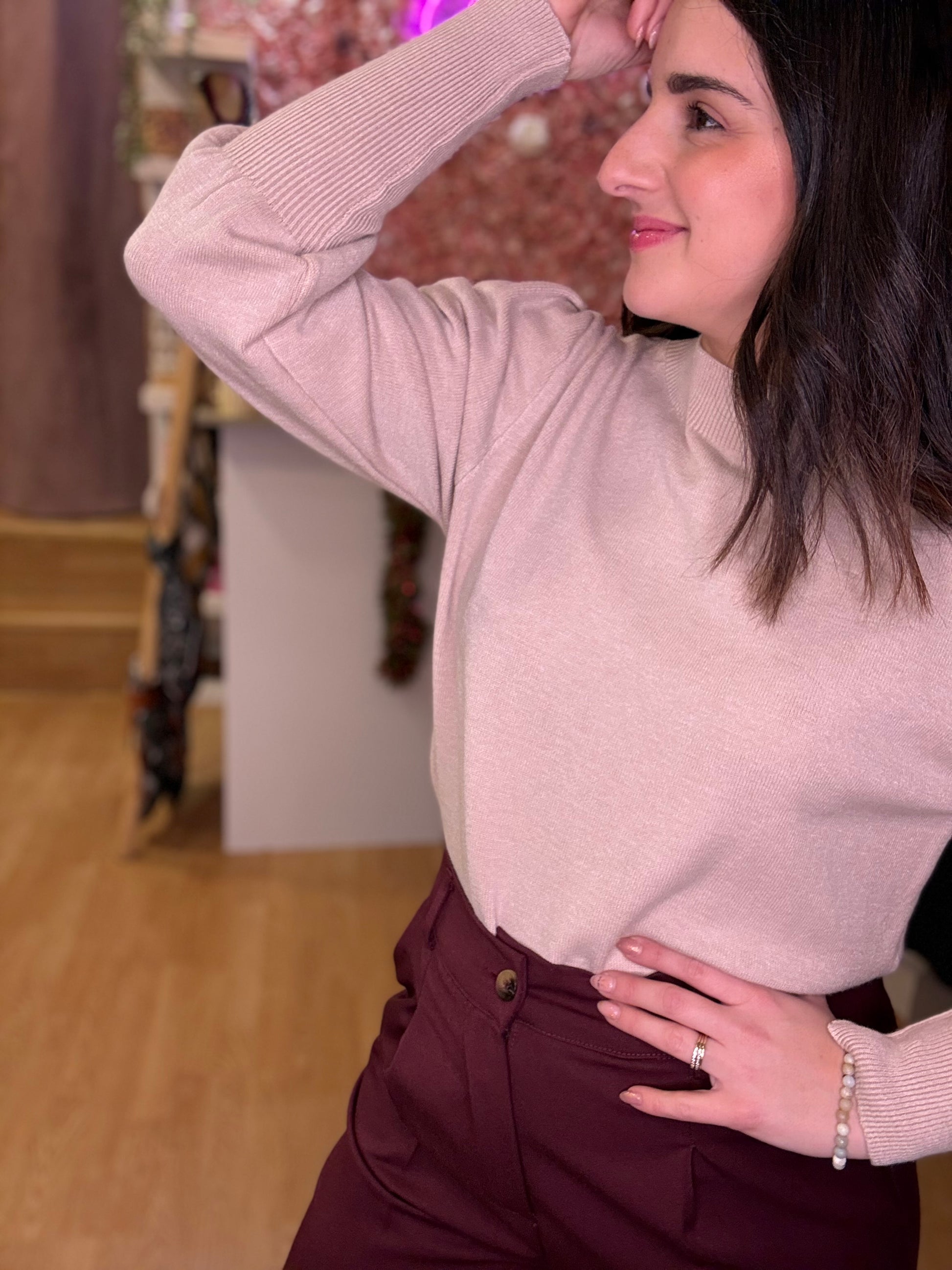 El cuello redondo y los acabados en canalé equilibran el conjunto, haciéndolo fácil de combinar tanto con vaqueros como con pantalones más arreglados. Es ese jersey que te apetece repetir porque te ves bien… y te sientes aún mejor.