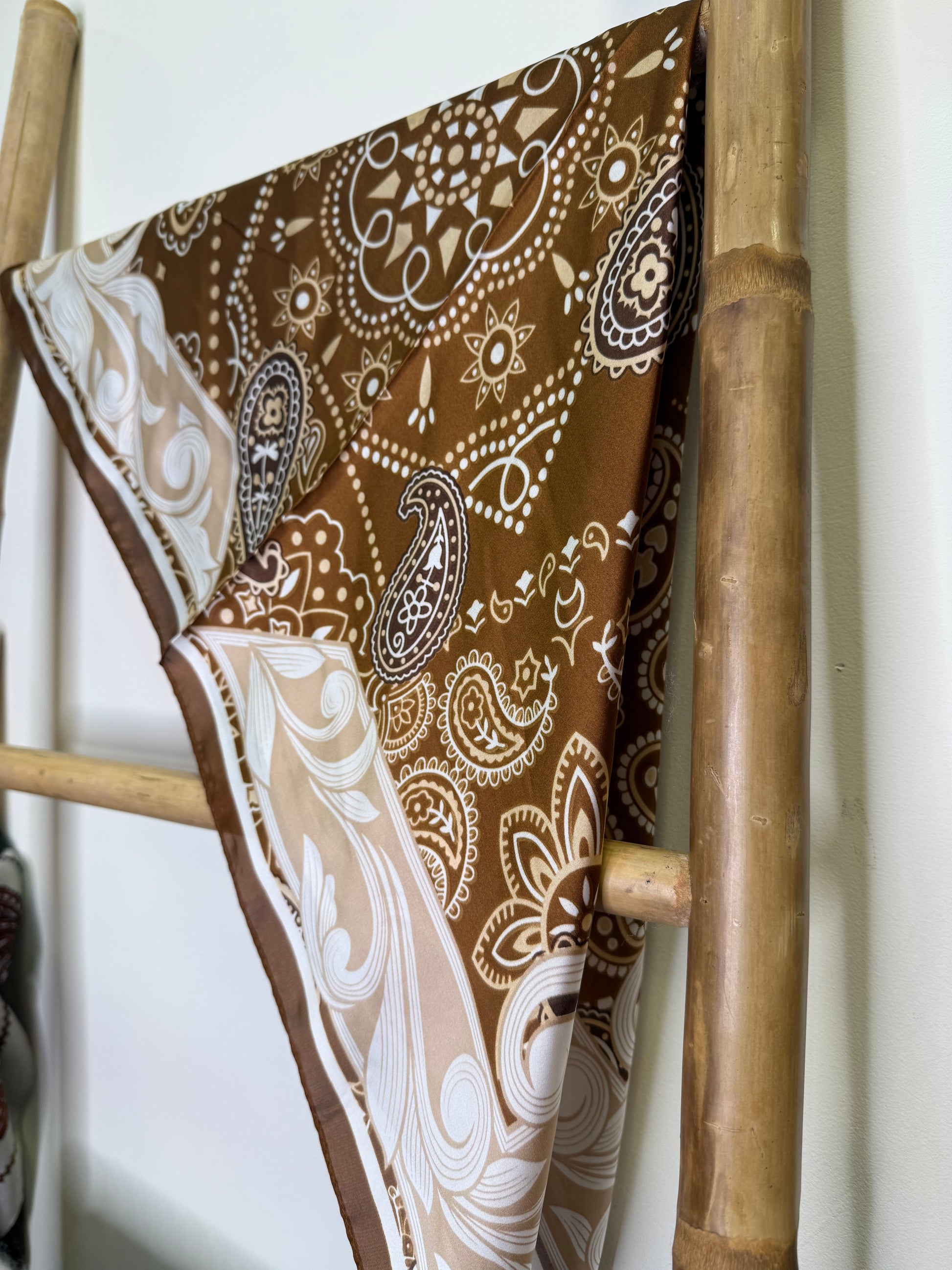 Nuestros pañuelos cuadrados satinados 100% poliéster son el accesorio perfecto para dar un toque elegante y actual a cualquier look. Su tejido satinado ofrece un acabado suave, ligero y con un brillo delicado que realza el estilo sin esfuerzo. Disponibles en una gran variedad de estampados tendencia —desde animal print, cuadros clásicos, paisley, lunares y diseños geométricos—, estos pañuelos se adaptan a todos los gustos y ocasiones.