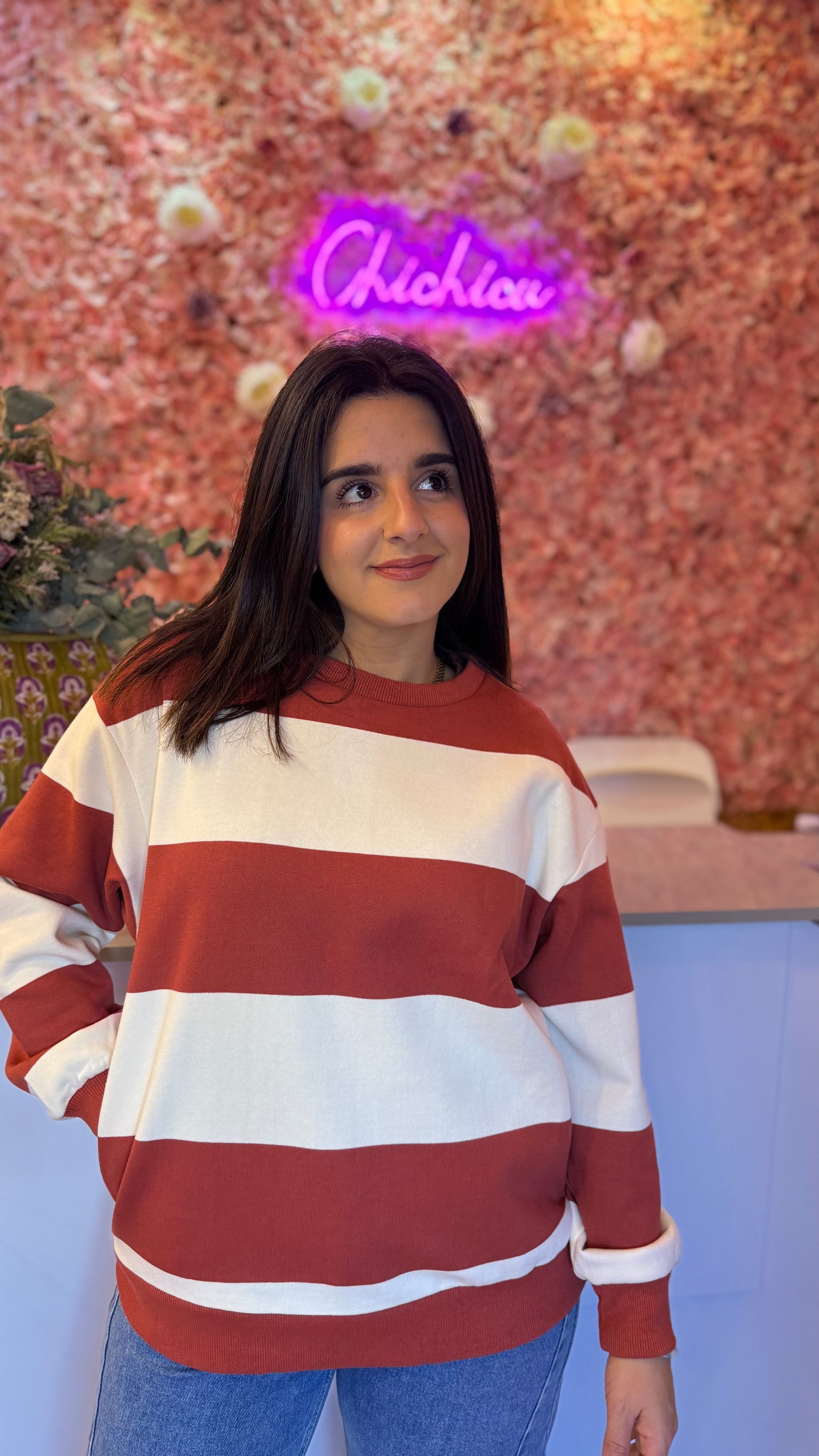 La sudadera Autumn es la prenda perfecta para tus looks de entretiempo y otoño. Confeccionada en una mezcla de 80% algodón y 20% poliéster, combina la suavidad y transpirabilidad del algodón con la resistencia y durabilidad del poliéster. Su diseño de rayas anchas bicolor le da un aire fresco, moderno y versátil, ideal tanto para un look casual de diario como para un outfit más cuidado con vaqueros o pantalones de estilo relajado.