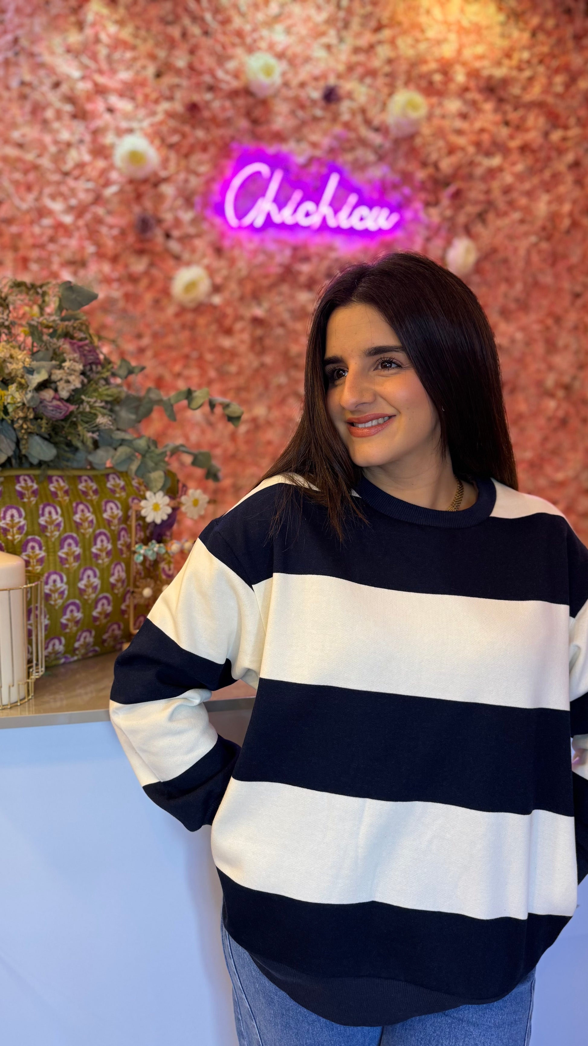 La sudadera Autumn es la prenda perfecta para tus looks de entretiempo y otoño. Confeccionada en una mezcla de 80% algodón y 20% poliéster, combina la suavidad y transpirabilidad del algodón con la resistencia y durabilidad del poliéster. Su diseño de rayas anchas bicolor le da un aire fresco, moderno y versátil, ideal tanto para un look casual de diario como para un outfit más cuidado con vaqueros o pantalones de estilo relajado.