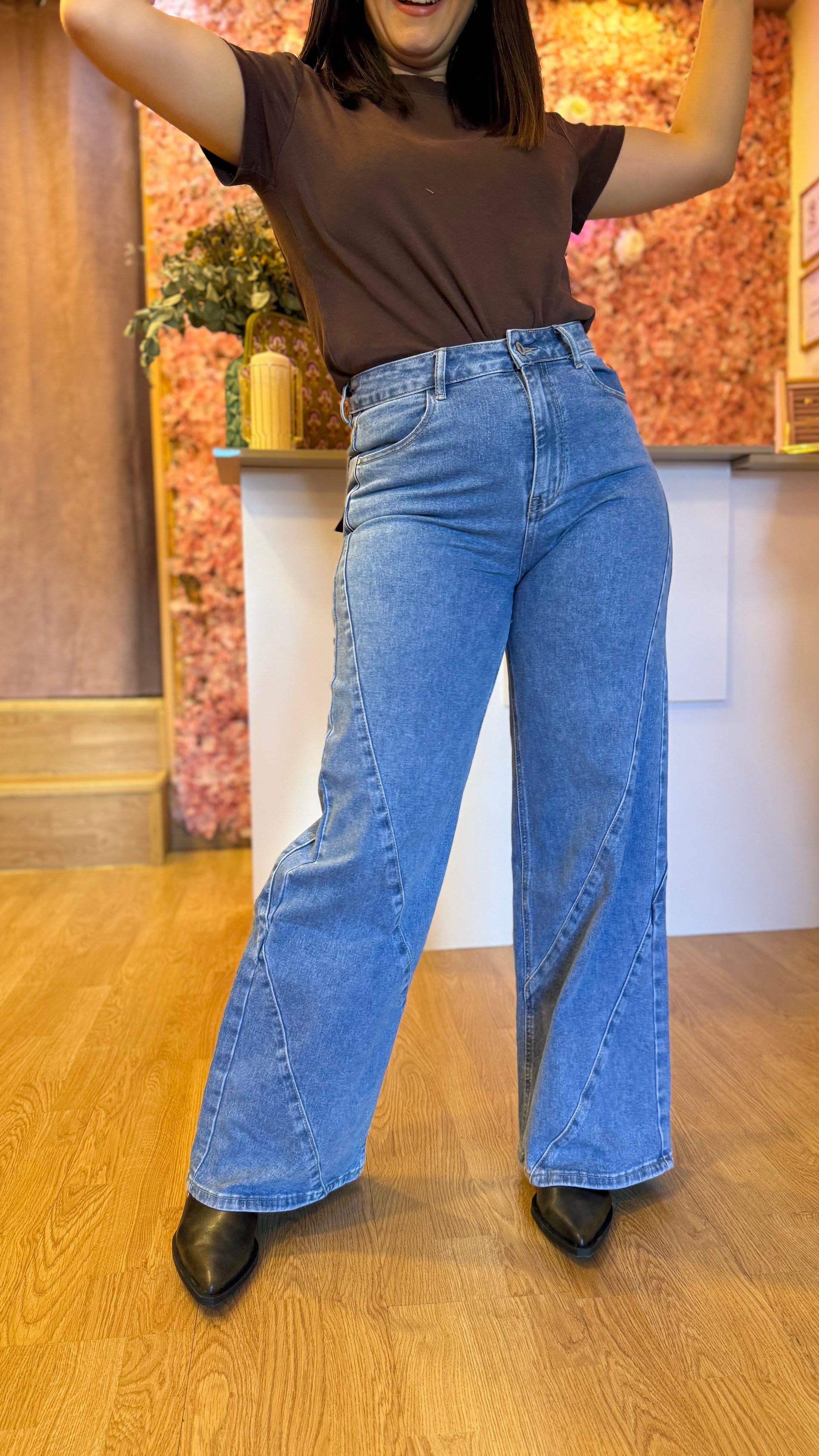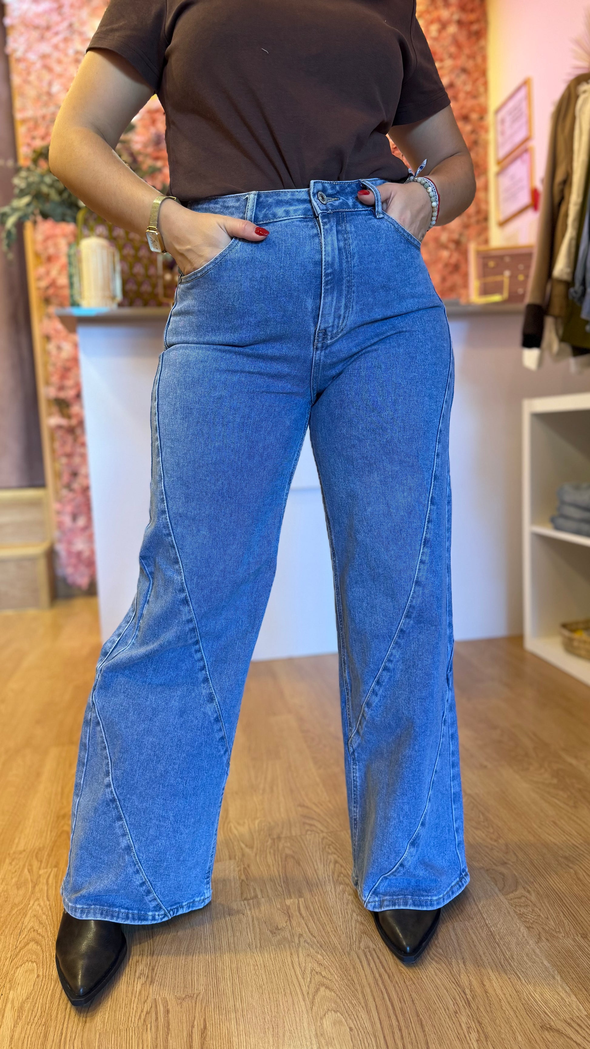Su patrón wide leg con costuras curvas decorativas estiliza y alarga la pierna, mientras que su tiro alto realza la cintura y aporta un aire favorecedor y moderno. Un vaquero versátil que podrás llevar tanto con básicos del día a día como con blusas o tacones para un look más sofisticado.